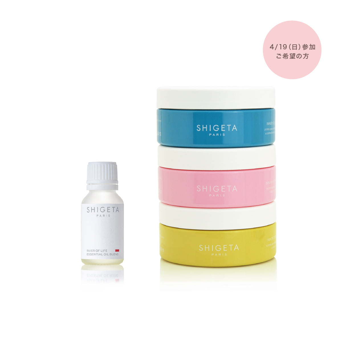 ・インナーハピネス:海塩、ベルガモット果皮油、オレンジ果皮油、マンダリンオレンジ葉油、ニオイテンジクアオイ花油、ダマスクバラ花油、クスノキ木油、チョウジつぼみ油、ショウガ根エキス、ニュウコウジュ油、トコフェロール